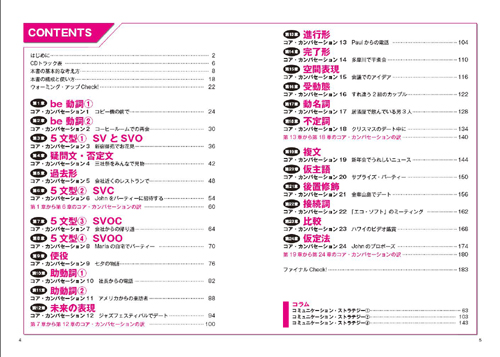 この正解の学習法をシステマティックに実践できるようにしたのが本書です。英会話に必要な文法項目を含んだ会話を聞き、会話の内容に関するTRUE/FALSEの質問、さらにYES/NOの質問に答えます。続けて、今度は自分自身についての質問に答えます。この練習を繰り返すことで、「知ってはいた文法」が「自動的に使える」ようになります。とあるソフトウェア会社の東京オフィスを舞台にしたリアルな会話を楽しみながら、今度こそ「使える英語」が身につきます。■目次■